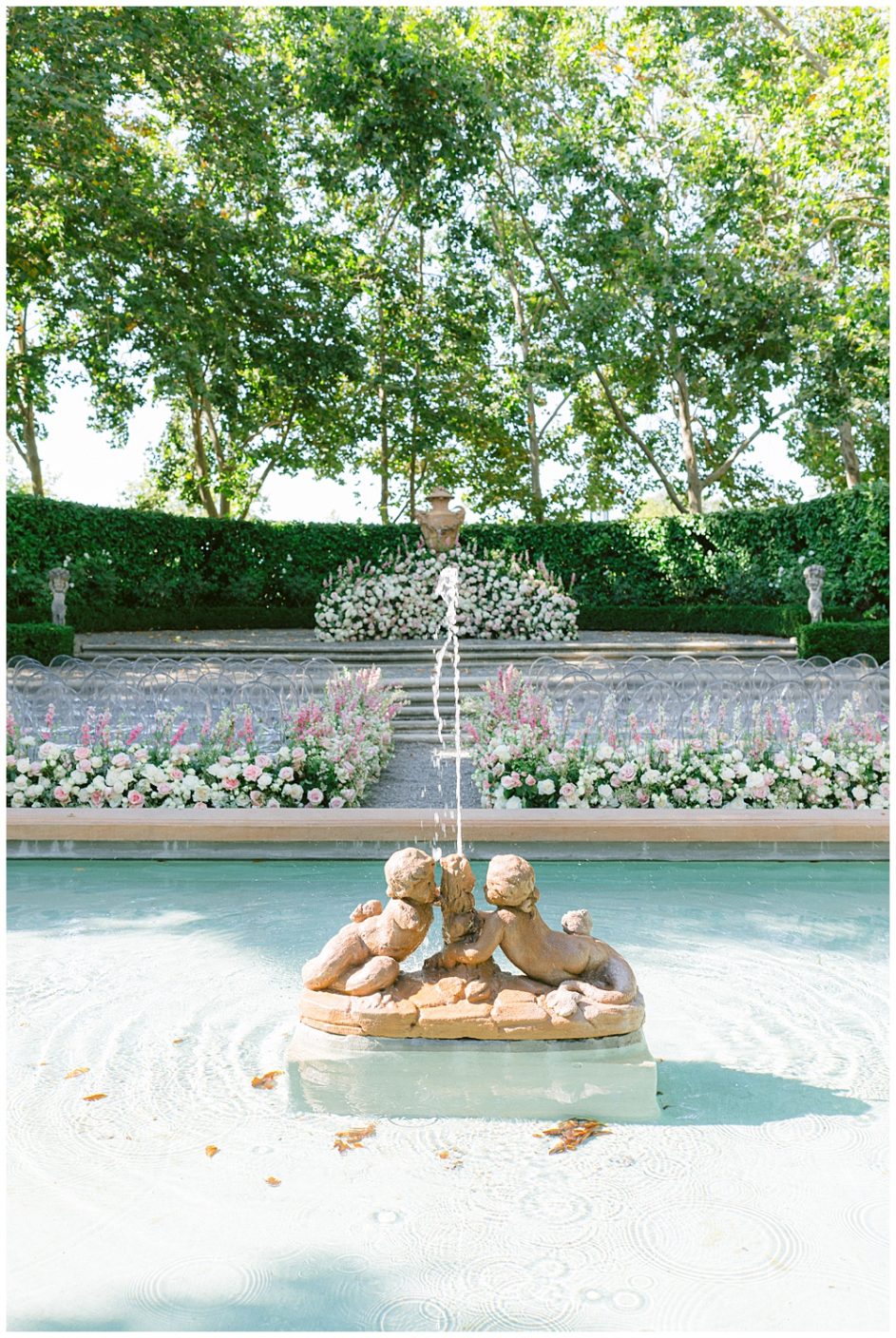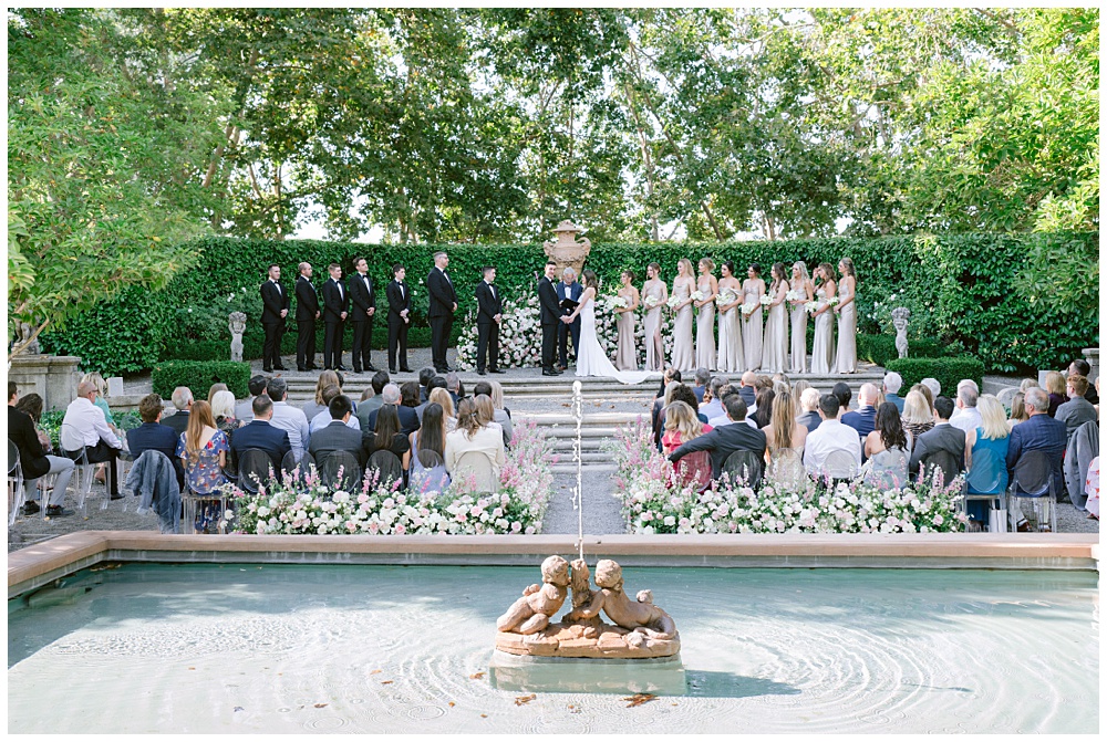Post-ceremony, the Italian Garden becomes the hub for a cocktail reception. Picture guests mingling around a fountain adorned with floral arrangements, sipping signature cocktails under market umbrellas. The vibe here is refreshingly unapologetic about the “less is more” aesthetic, with understated elegance in every detail.