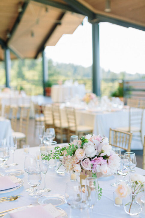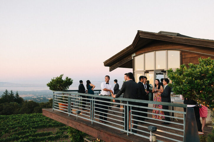 After the ceremony, guests flow effortlessly to the expansive terrace adjoining the open-air Pavilion. This terrace feels like it’s floating above the vineyards, offering a front-row seat to the beauty of the Santa Cruz Mountains.